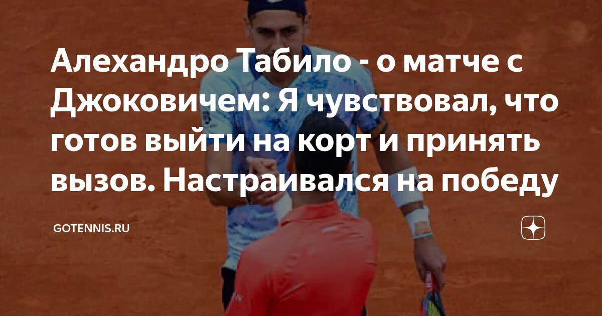 32-я ракетка мира, Алехандро Табило, поделился своими впечатлениями от победы над Новаком Джоковичем во втором круге турнира `Мастерс` в Монте-Карло, где он выиграл со счетом 6/3, 6/4.