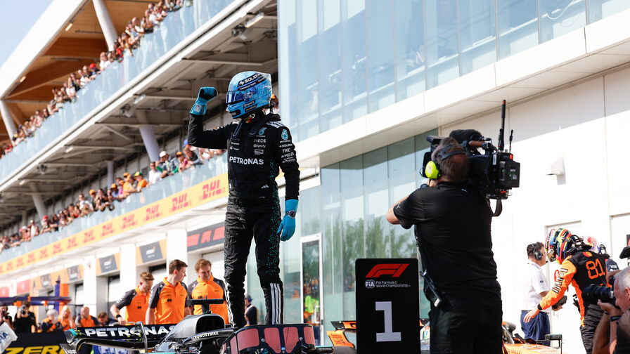 Расселл на протяжении всей гонки успешно сдерживал Макса Ферстаппена, а его напарник по Mercedes, Кими Антонелли, впервые в своей карьере в Формуле-1 поднялся на подиум, заняв третье место.