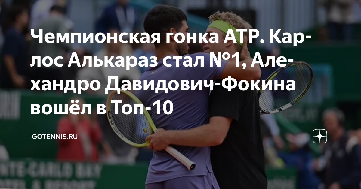 Карлос Алькараз, триумфатор турнира в Монте-Карло, поднялся на первую строчку Чемпионской гонки ATP по итогам прошедшей недели.