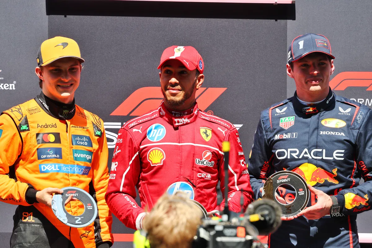 - Хэмилтон одержал первую победу в спринте с 2021 года, опередив Макса Ферстаппена и своего товарища по команде Ferrari Шарля Леклера