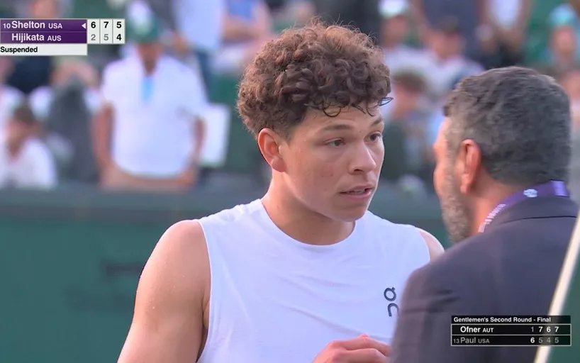 Отметим, что игра Бена Шелтона была остановлена непосредственно в тот момент, когда американский теннисист собирался подавать на матч.