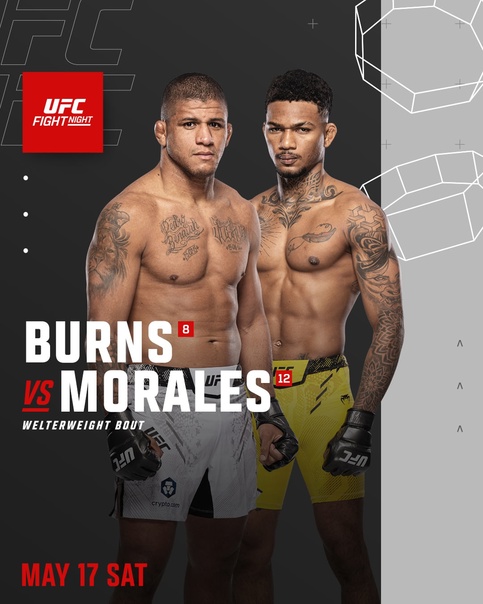 Чтобы прервать череду неудач и вернуться в гонку за титул, Бёрнсу необходимо нанести первое поражение в карьере непобежденному проспекту Майклу Моралесу. Рекорд Моралеса выглядит безупречно: 17 побед при отсутствии поражений, включая пять успешных выступлений под эгидой UFC.