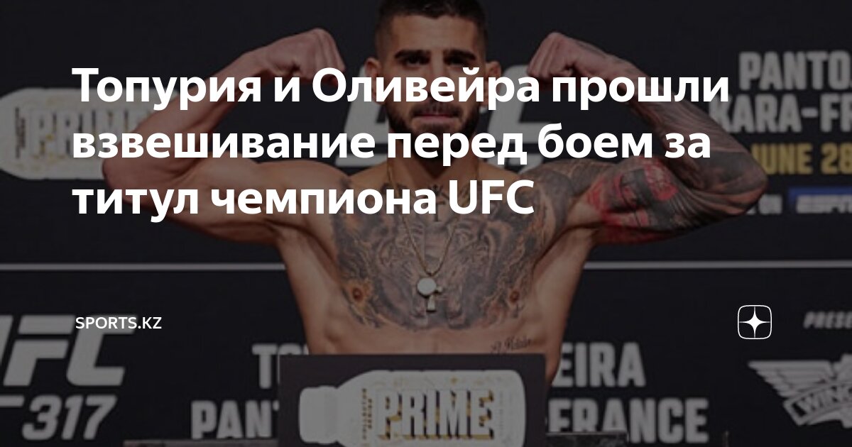 Вскоре после этого главный бой вечера в легком весе, запланированный на субботу, стал официально подтвержденным, так как Чарльз Оливейра также успешно прошел взвешивание, показав немного меньше лимита — 154,5 фунта. Топурия и Оливейра поспорят за пояс, который, согласно информации, предоставленной в этом тексте, оставил вакантным первый номер рейтинга pound-for-pound Ислам Махачев, собирающийся перейти в полусредний вес для боя с чемпионом Джеком Деллой Маддаленой.