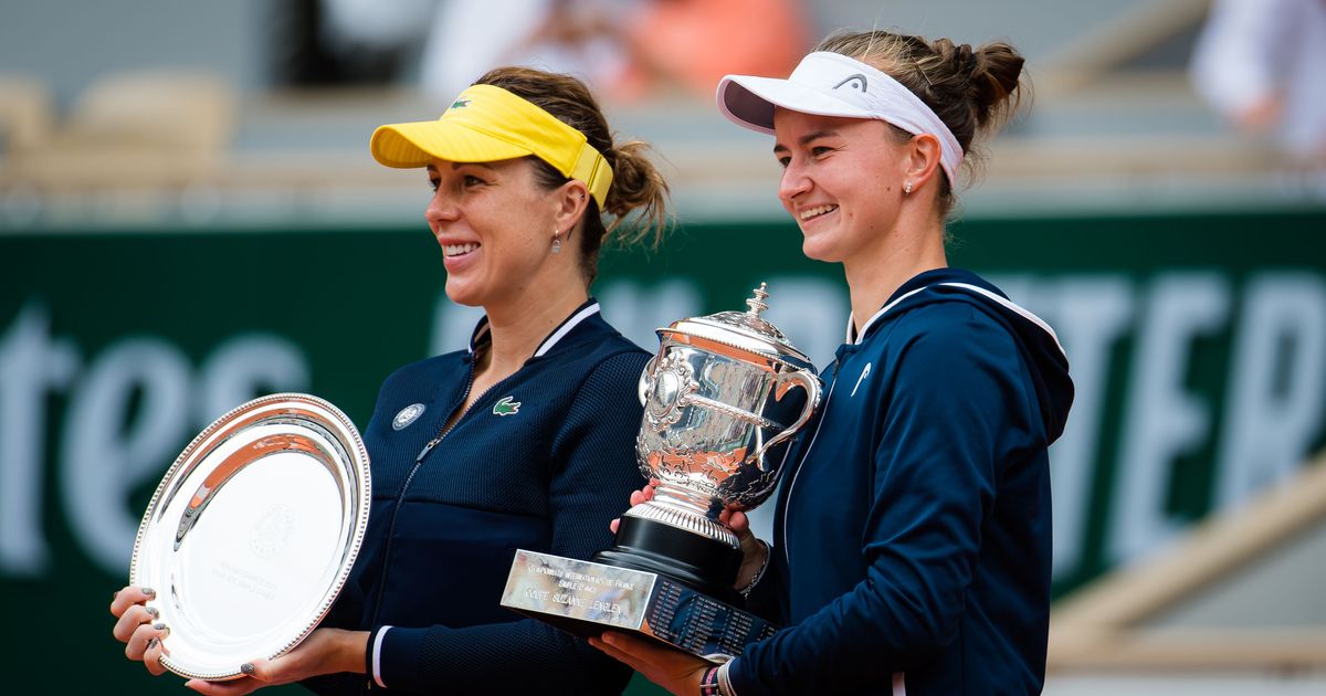Павлюченкова и Барбора Крейчикова на церемонии награждения после финала «Ролан Гаррос»-2021