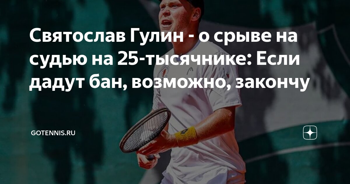 Российский теннисист Святослав Гулин, занимающий 407-е место в мировом рейтинге, подтвердил вероятность завершения своей профессиональной карьеры. Это решение может быть вызвано возможной дисквалификацией после инцидента на турнире ITF M25 в Сабаделе, где он выступал против Алехо Санчеса Килеса.