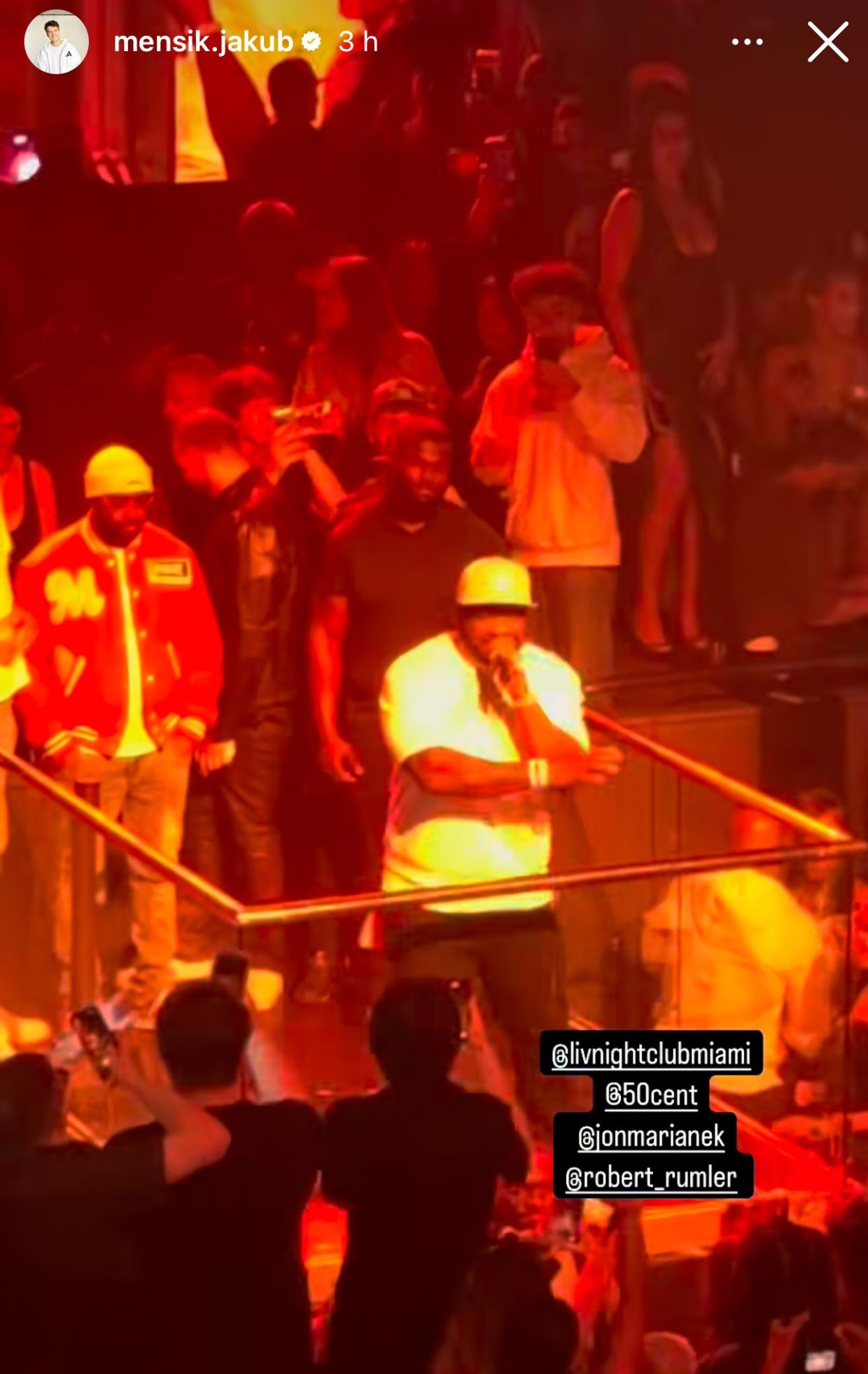 19-летний чешский теннисист Якуб Меншик, 24-я ракетка мира, после своей триумфальной победы на турнире серии «Мастерс» в Майами, посетил приватный концерт известного американского хип-хоп исполнителя 50 Cent. Мероприятие прошло в ночном клубе LIV.